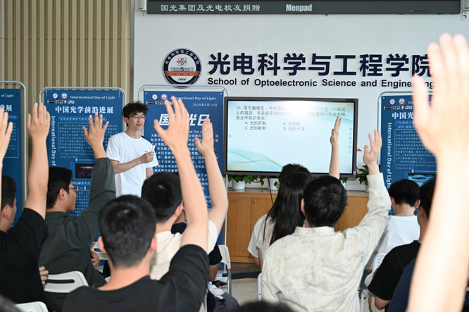 成都学生分会活动知光·用光·创未来——2025年国际光日知识竞赛圆满举办 5月15日,电子科技大学清水河校区4号科研楼B区一楼大厅再次迎来了一场精彩纷呈的学术盛宴——2025年国际光日知识竞赛。本次竞赛由国际信息显示学会成都分会和中国光学学会电子科技大学学生分会共同举办,以“知光·用光·创未来”为主题,旨在激发同学们对光学知识的兴趣,提升思维敏捷性与团队协作能力。 竞赛采用抢答形式,题目涵盖物理光学、几何光学、光通信、激光技术、照明科学、显示技术等多个领域。主办方精心准备了四十道单选题和二十道多选题,单选题答对得一分,多选题答对得两分。选手们通过举手抢答,现场气氛紧张而热烈。最终,根据得分高低评选出优胜奖一名、一等奖两名、二等奖四名以及三等奖五名,以表彰他们在竞赛中的优异表现。